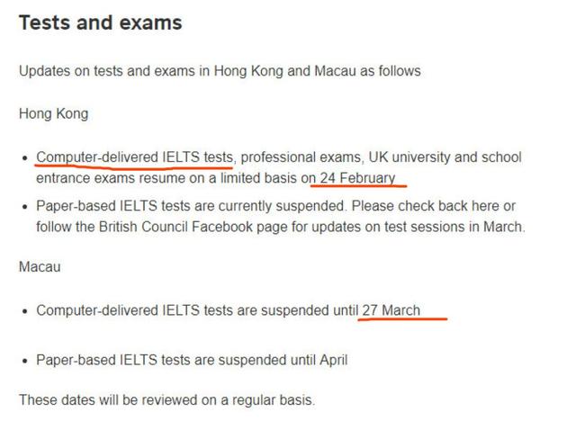 中國香港地區(qū)自2月24日恢復(fù)雅思機考,紙筆考試繼續(xù)暫停;中國澳門地區(qū)自3月27日恢復(fù)雅思機考,紙筆考試繼續(xù)暫停。
